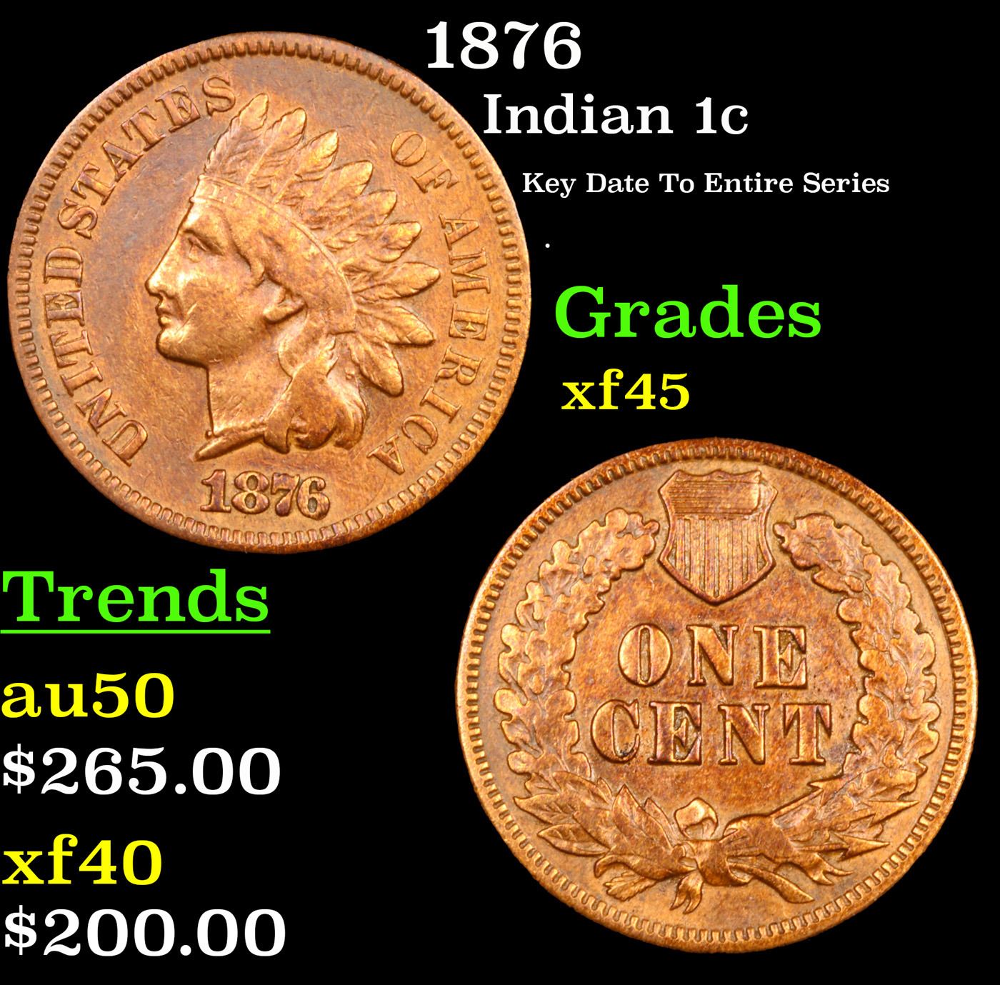 1876 Indian Cent 1c Grades xf+. very scarce date. PCGS estimates that only 5000 survive in all grades