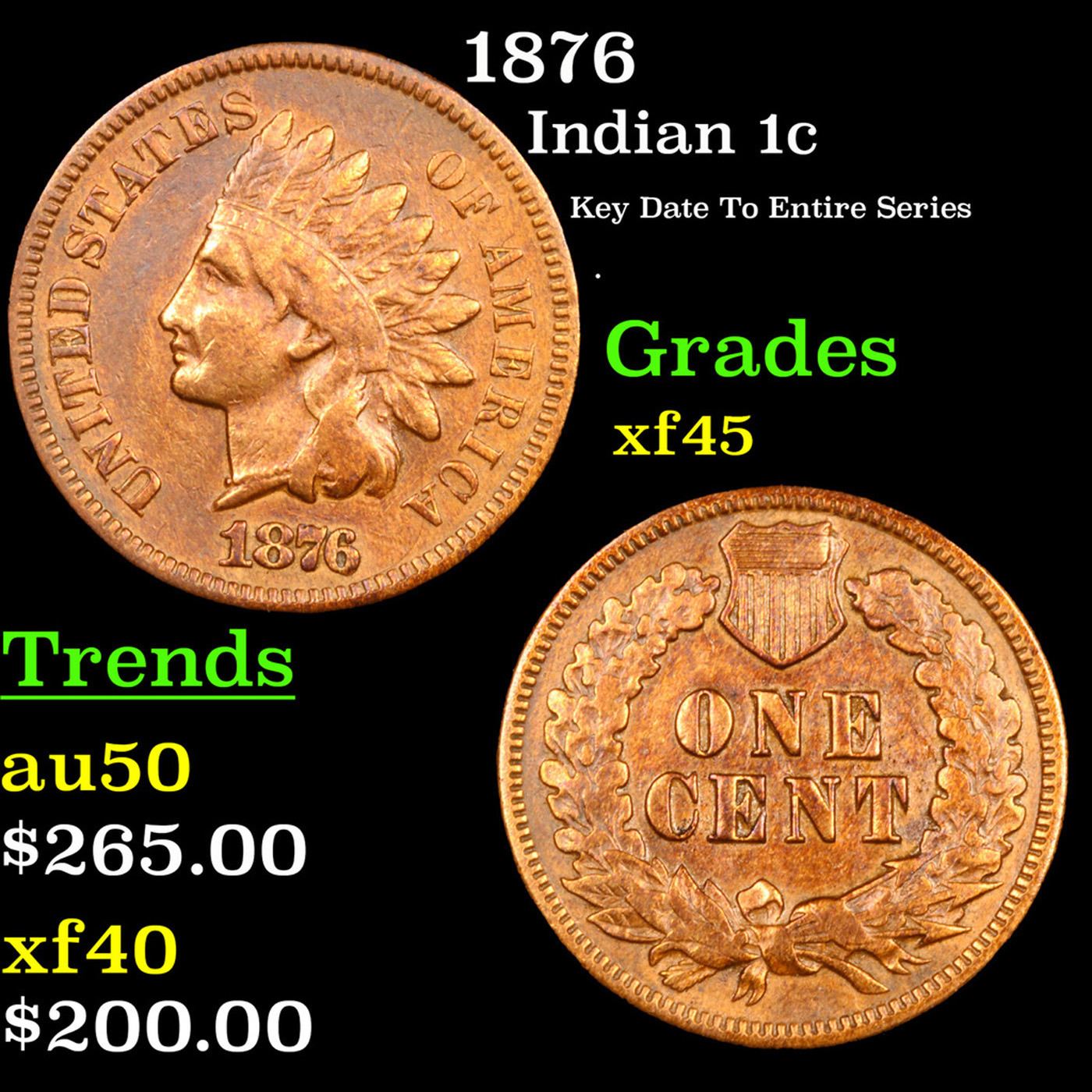 1876 Indian Cent 1c Grades xf+. very scarce date. PCGS estimates that only 5000 survive in all grades