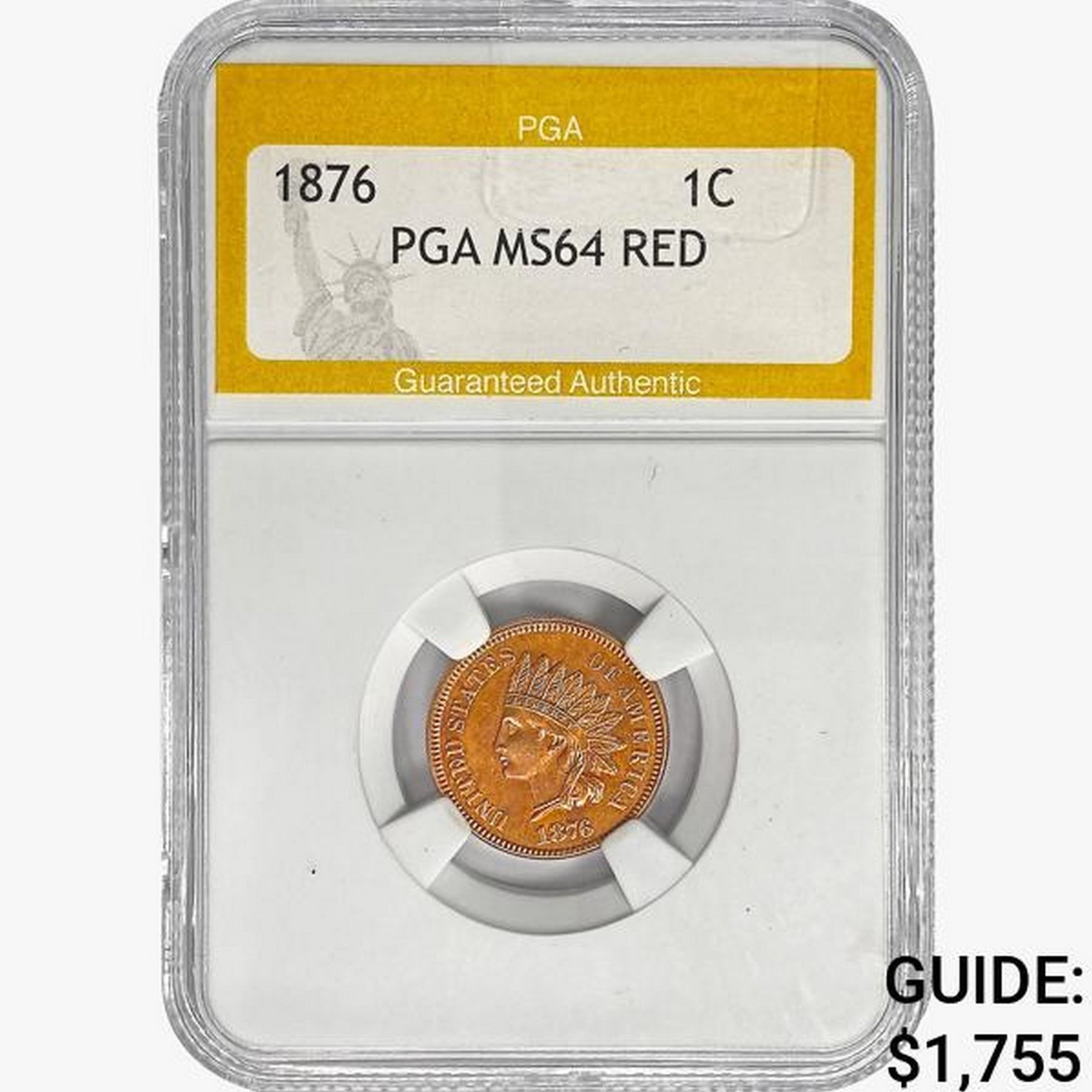 1876 Indian Head Cent PGA MS64 RED