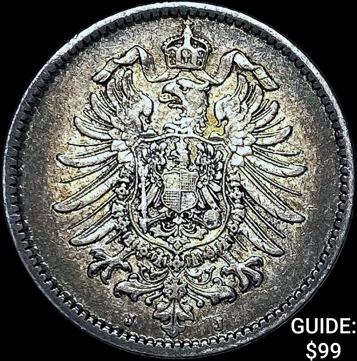 1876-J Germnay Silver 1 Reichsmark NEARLY UNCIRCULATED