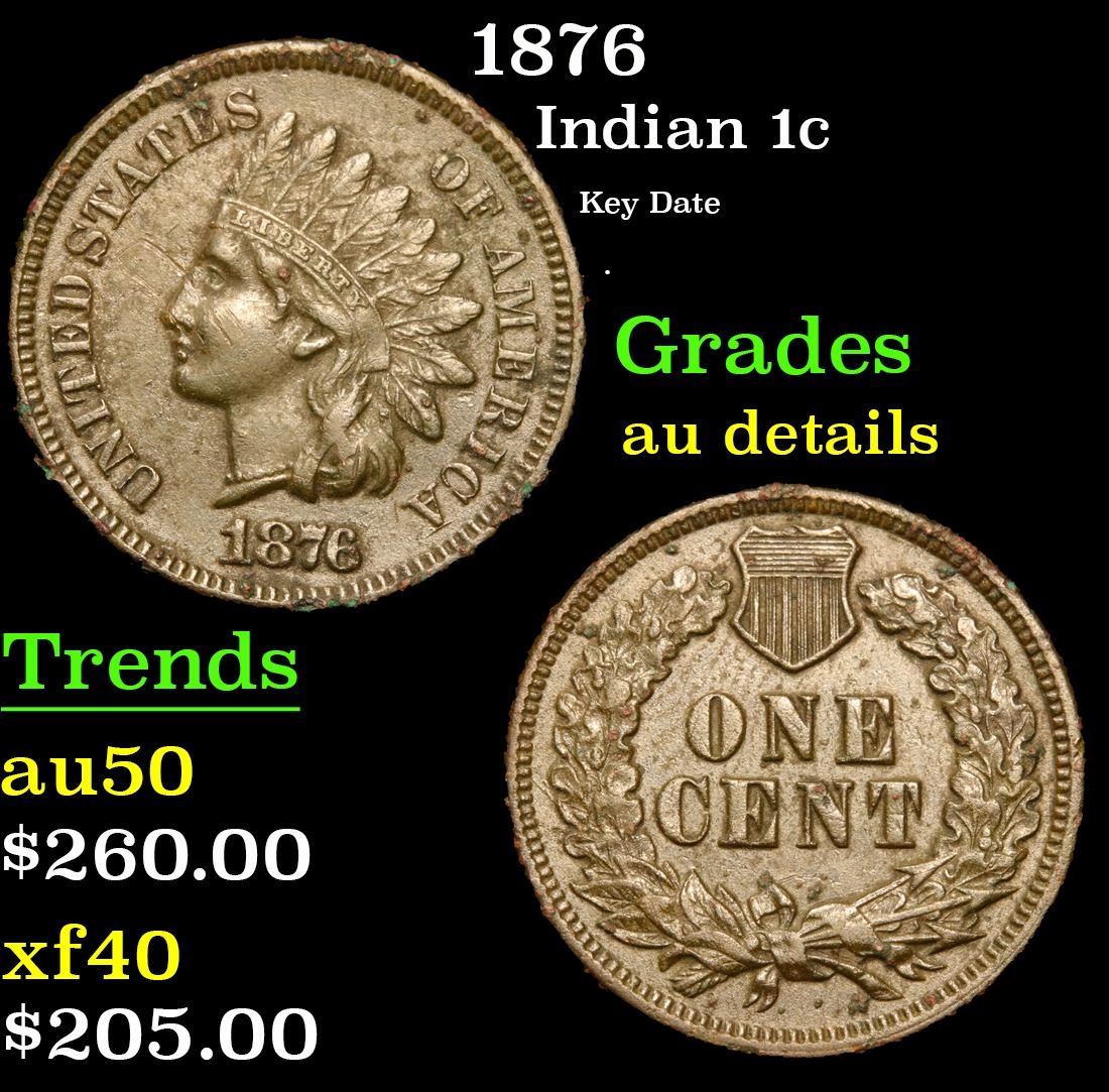 1876 Key Date . Indian Cent 1c Grades AU Details. very scarce date. PCGS estimates that only 5000 survive in all grades