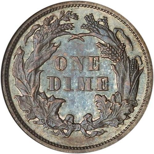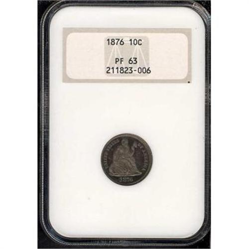 <b>1876 Liberty Seated Dime. NGC graded Proof 63.</b> Nicely toned surface characterizes the choice quality on this lovely piece. The devices were struck with such force and energy by the dies that all design elements show boldly <b>(PCGS # 4773)</b> <i>