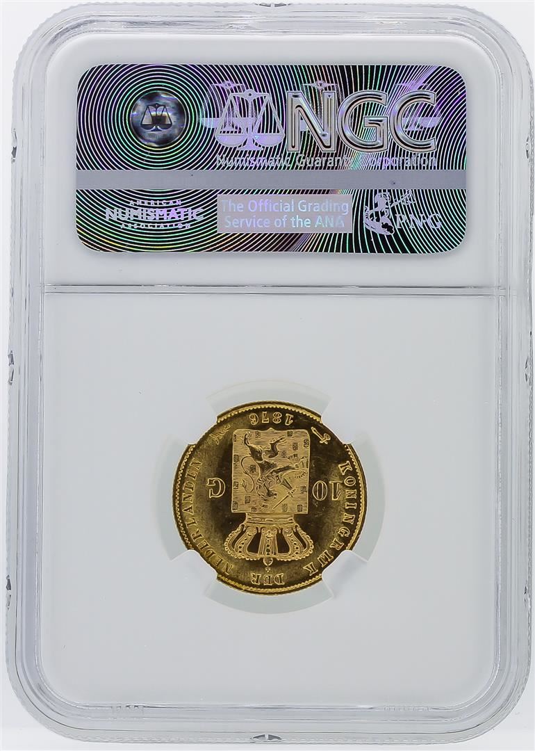 One 1876 Netherland 10 Gulden Gold Coin NGC Graded MS63. NGC Certified.