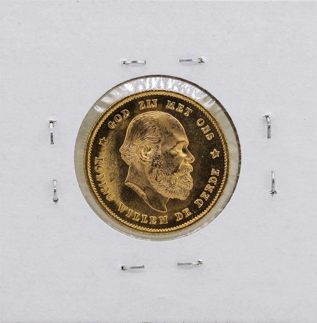 One 1876 Netherlands Koning William De Derde 10 Gulden Gold Coin.