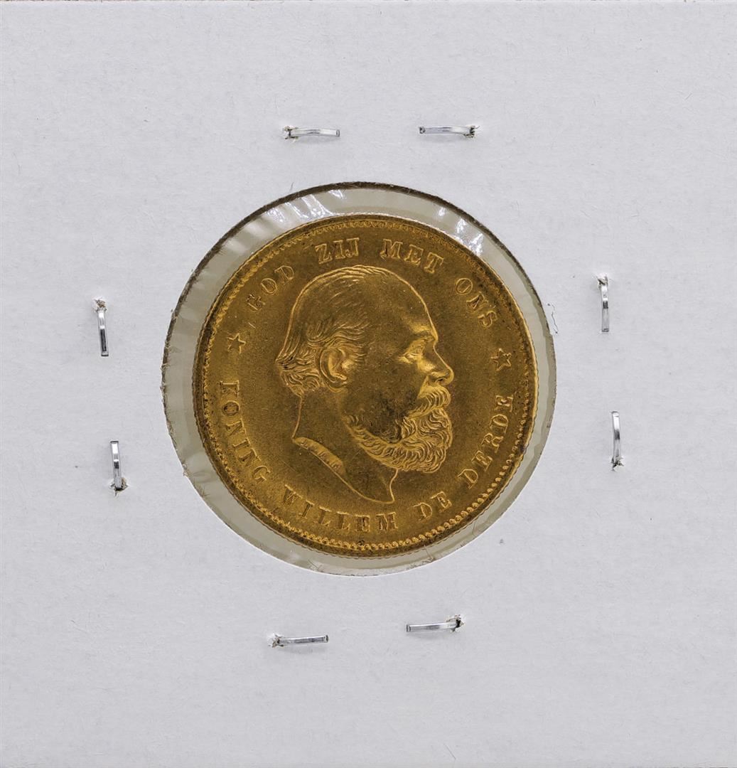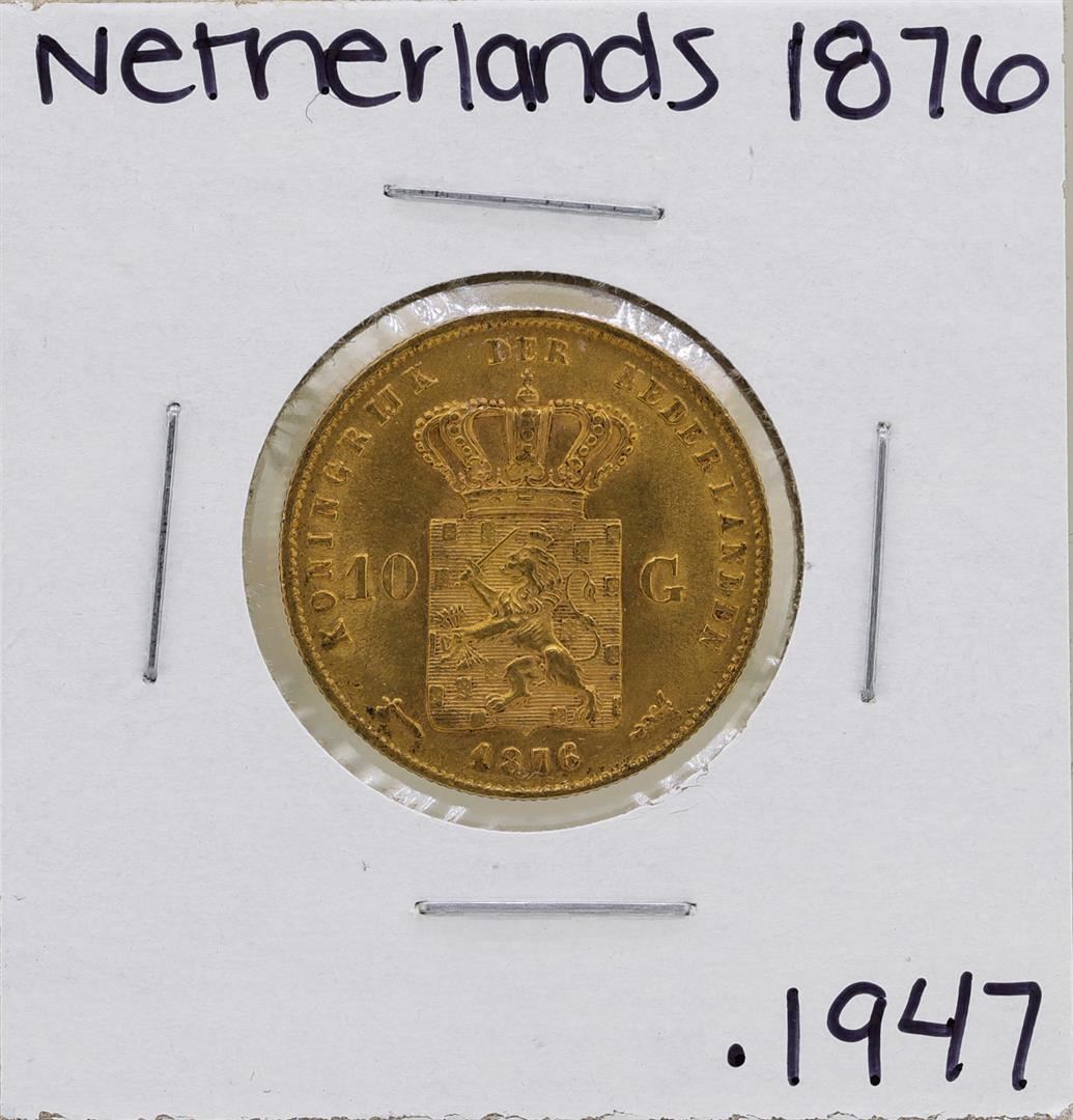 One 1876 Netherlands Koning William De Derde 10 Gulden Gold Coin.