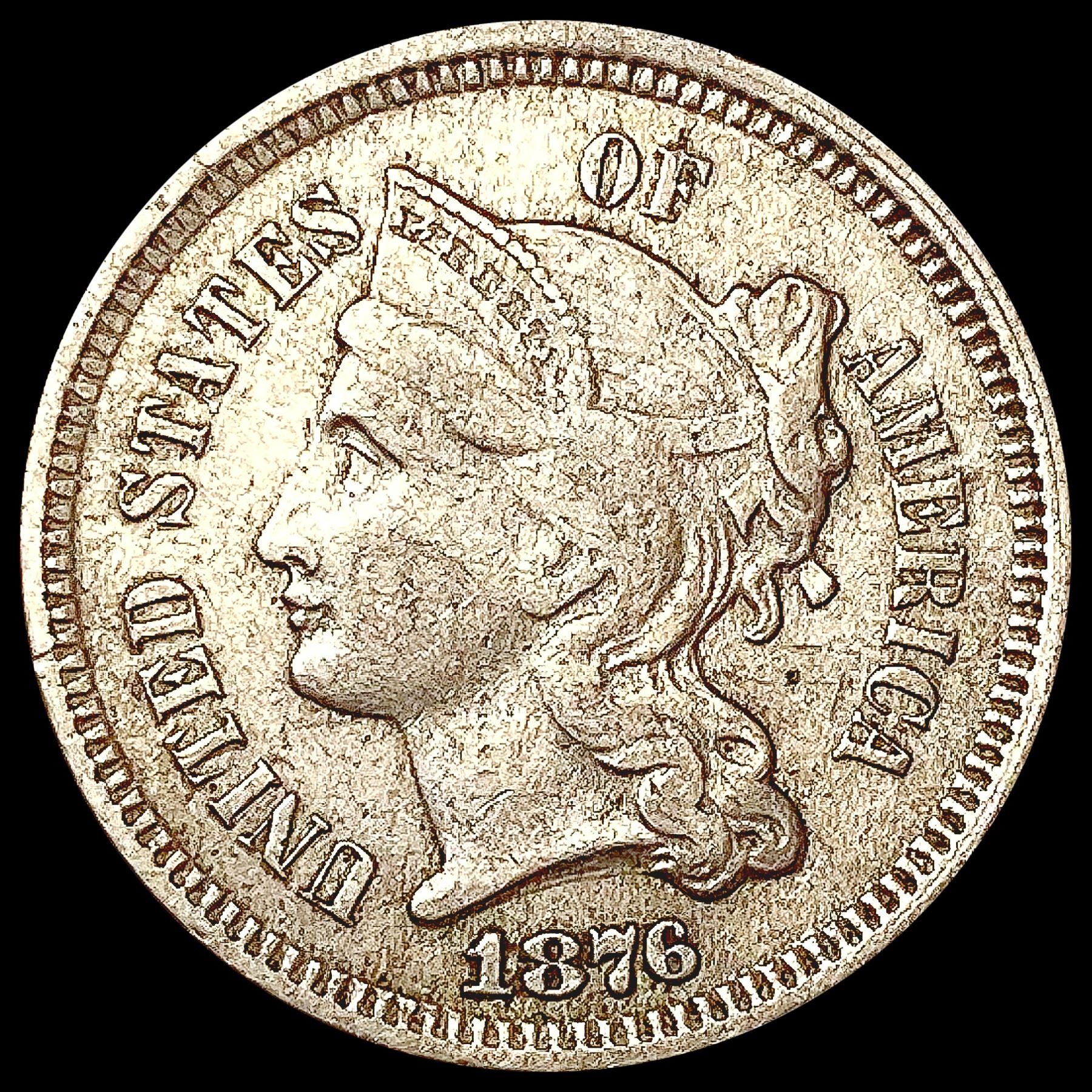 1876 Nickel Three Cent NEARLY UNCIRCULATED