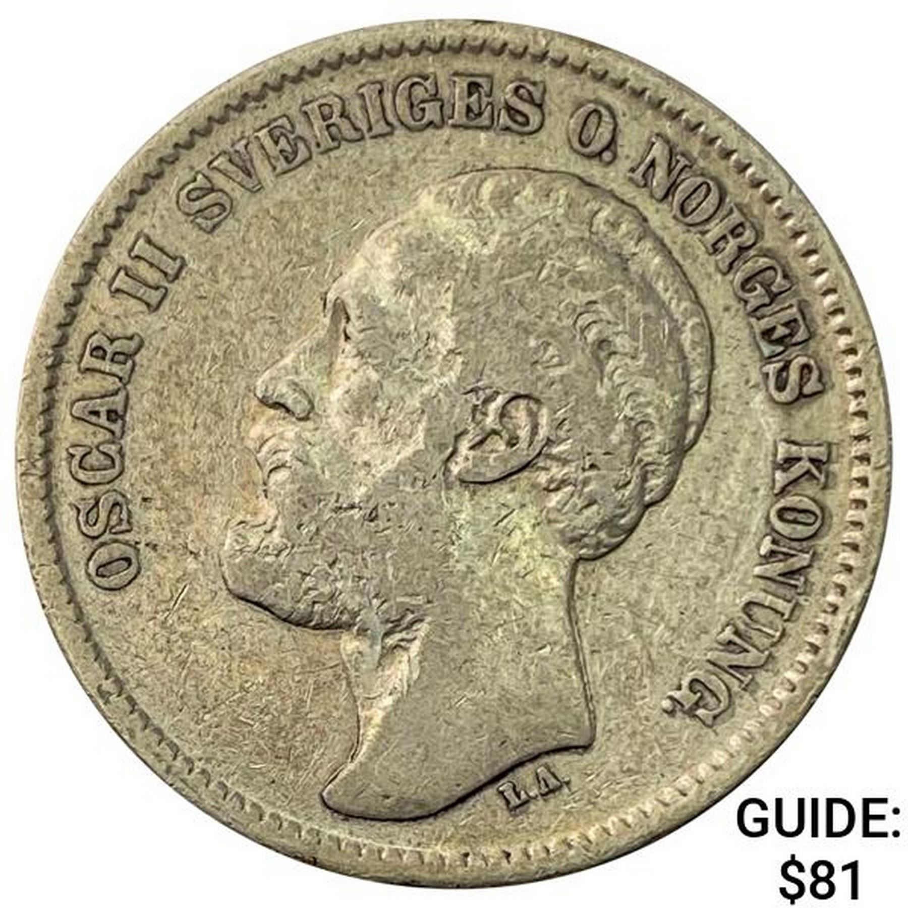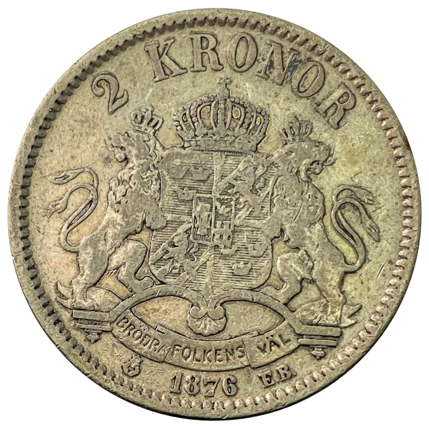 1876 Norway Silver 2 Kreuzer NEARLY UNCIRCULATED