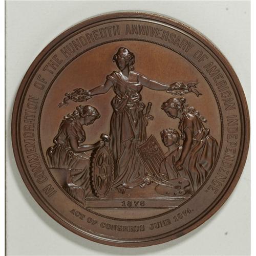 <B>1876 Official Centennial Exposition Medal MS65 Uncertified.</B></I> Julian CM-11. 57.7mm. Bronze. Chief Engraver William Barber designed this beautiful mahogany-brown medal. A needle-sharp Gem with exceptional eye appeal. The original presentation case is included, grades Fine, and has a working clasp.<BR><BR><b>Shipping:</b> Coin/Currency (<a target="_blank" href="http://www.heritageauctions.com/common/shipping.php">view shipping information</a>)