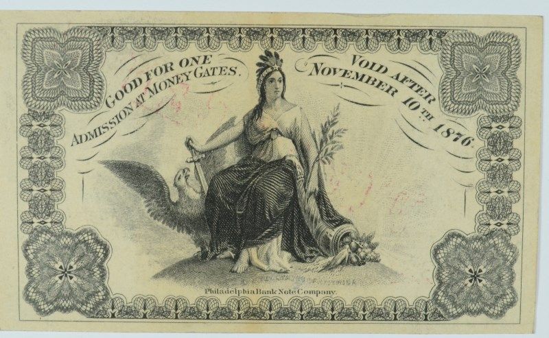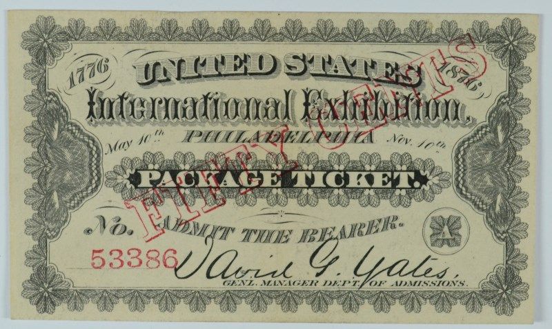 1876 PHILADELPHIA INTERNATIONAL EXHIBITON TICKET CU (RED OVERPRINT, RED SERIAL #