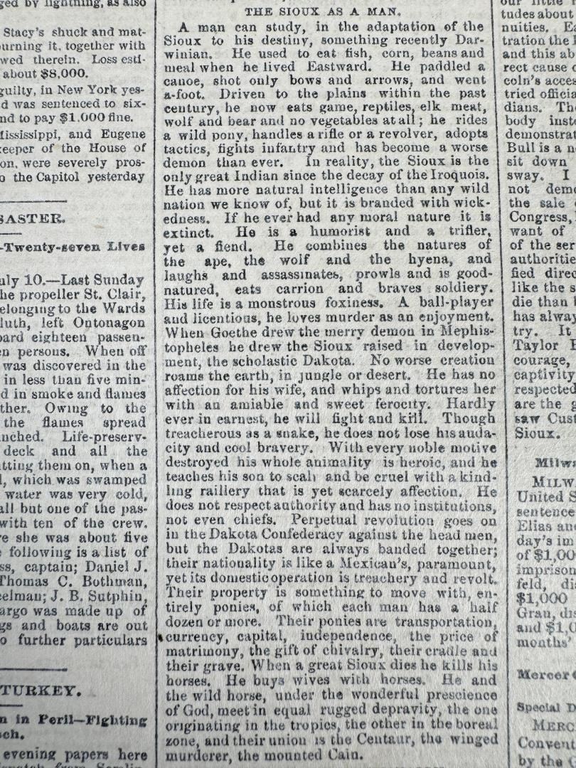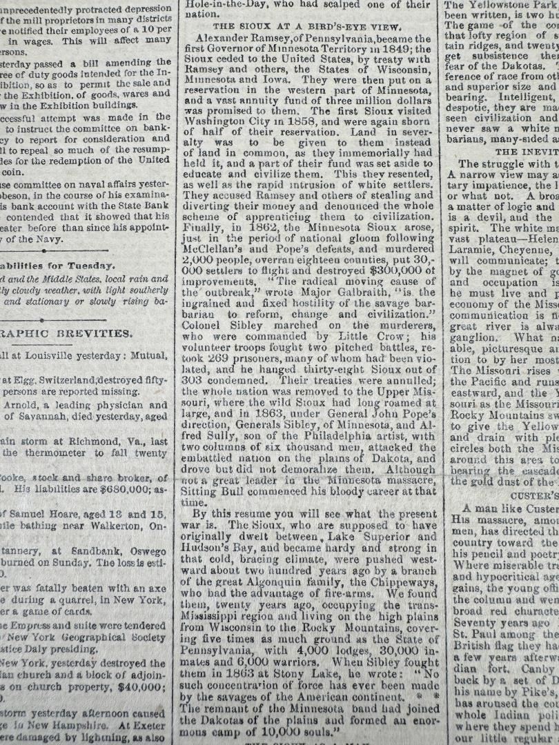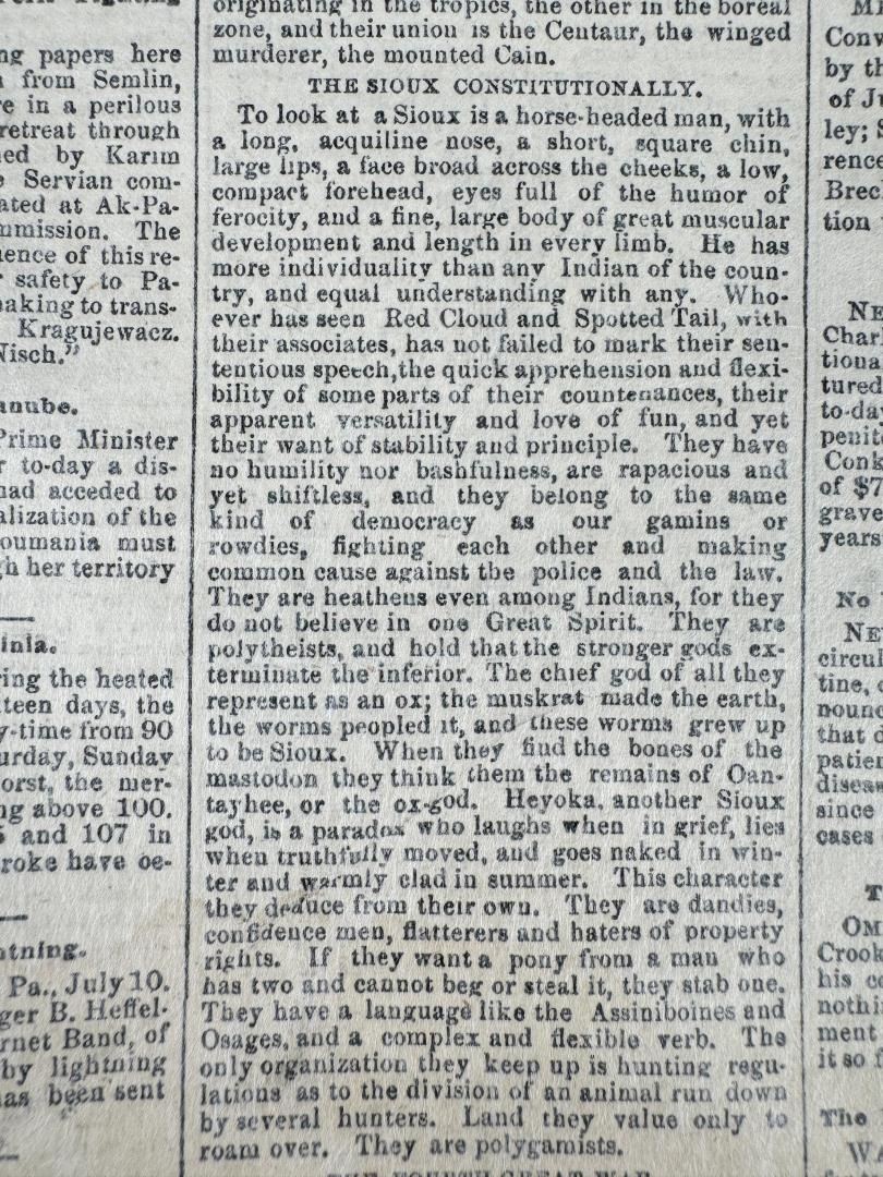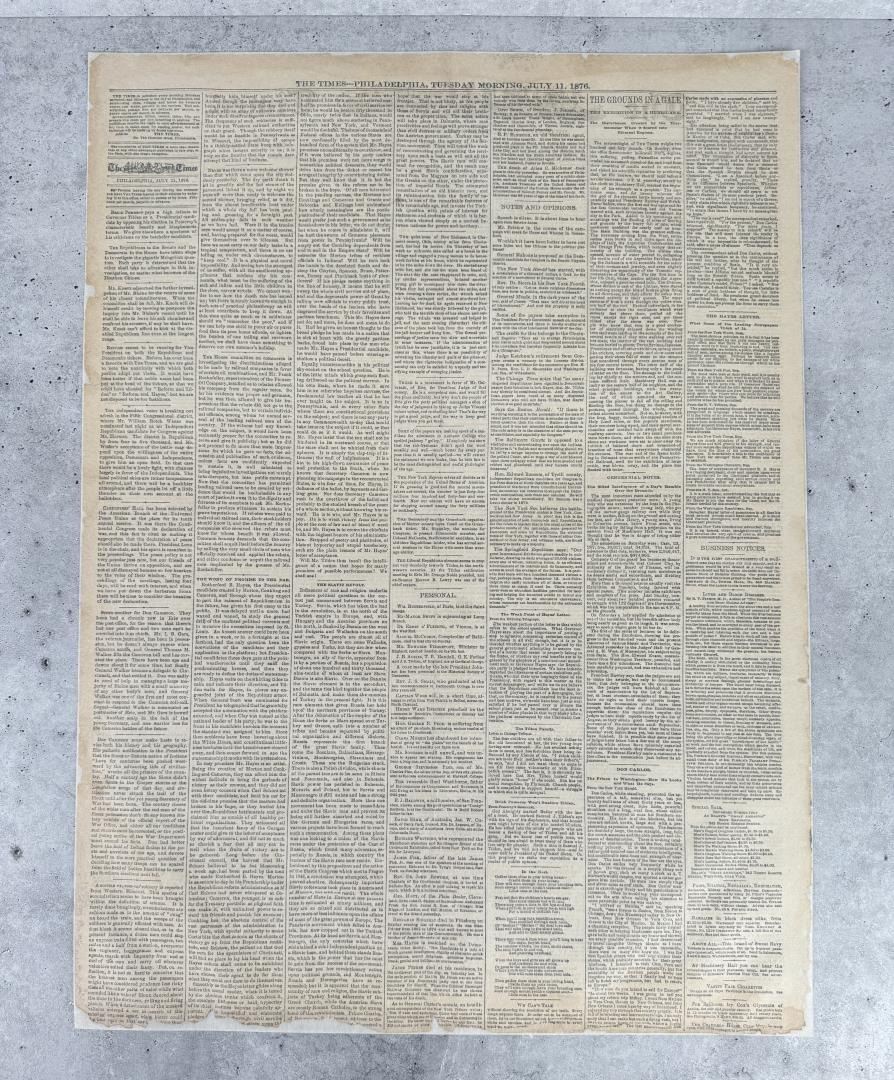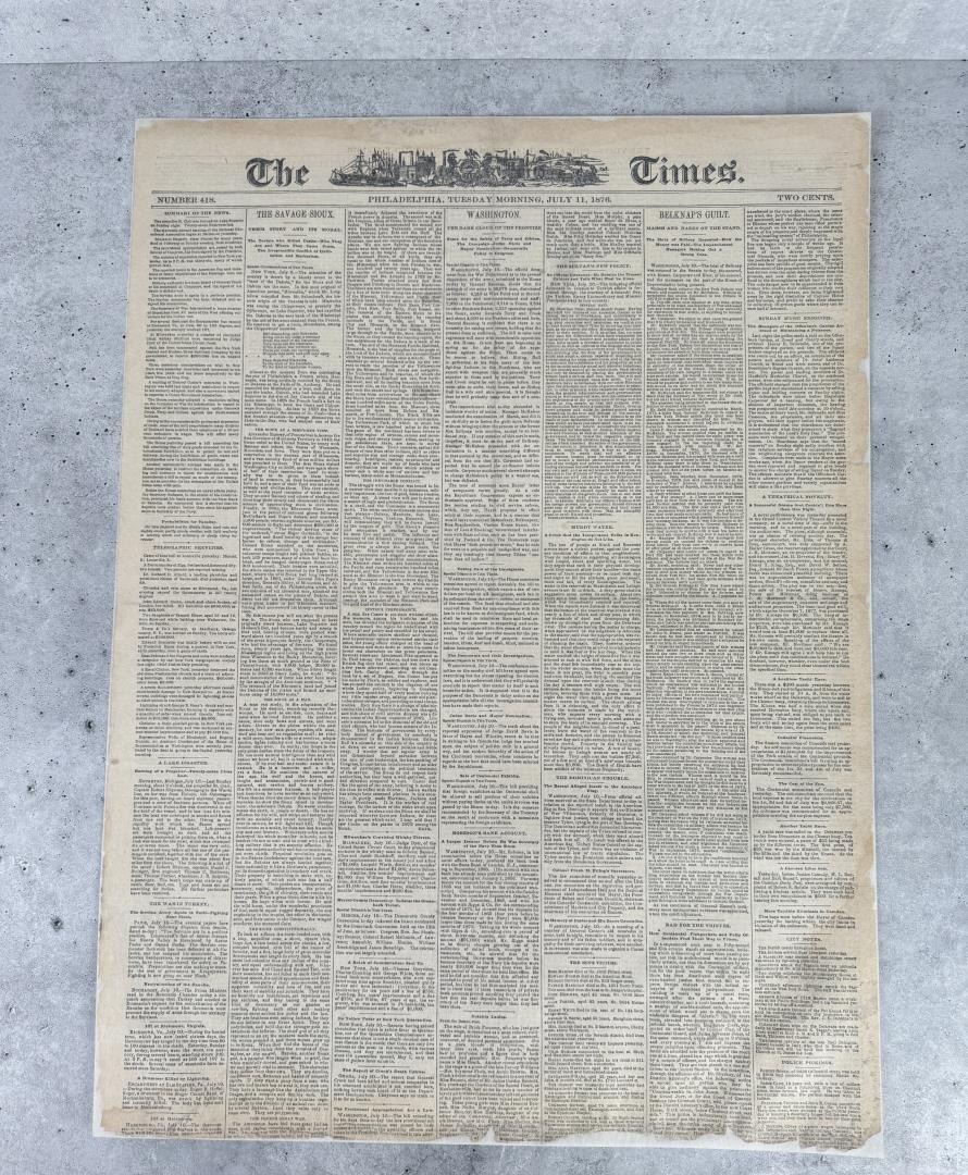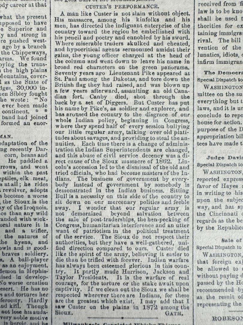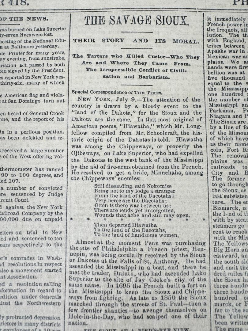 Newspaper date is July 11 1876. Custer was killed on June 26, 1876, but the news of the battle didn't reach the East for several days. The first reports of the battle began to appear on July 6th.
