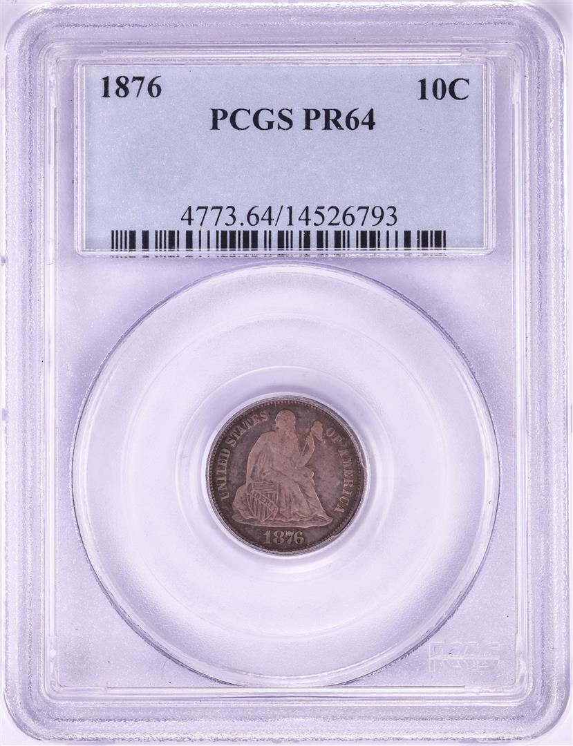 One 1876 Proof Seated Liberty Dime Coin PCGS PR64. PCGS Graded.