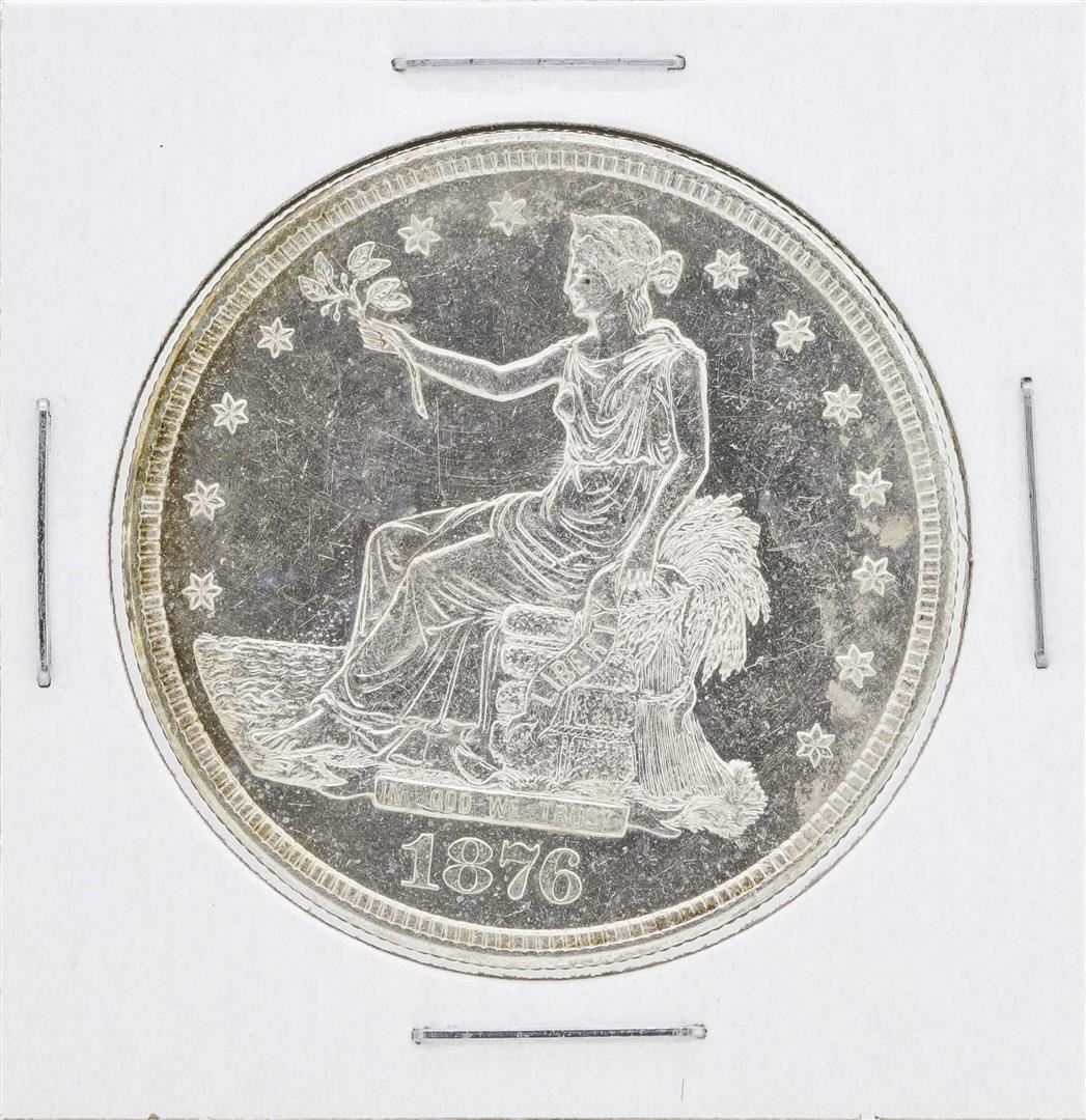 One 1876-S $1 Seated Liberty Trade Silver Dollar Coin.