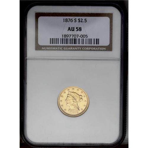 1876-S $2 1/2 AU58 NGC. Just a hint of highpoint frict