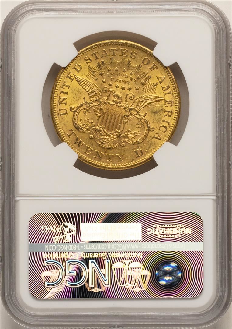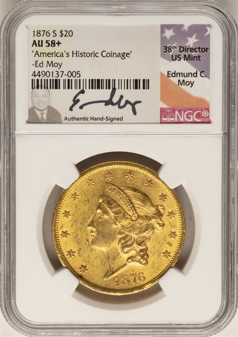 One 1876-S $20 Liberty Head Double Eagle Gold Coin NGC AU58+ Mint Director Signature. NGC Certified.