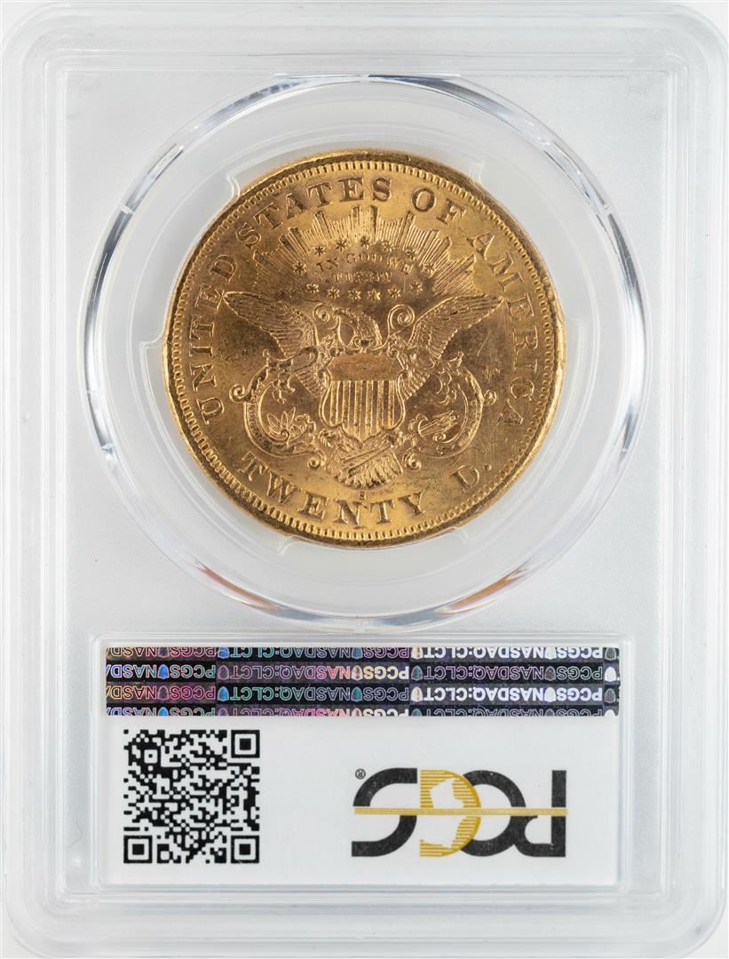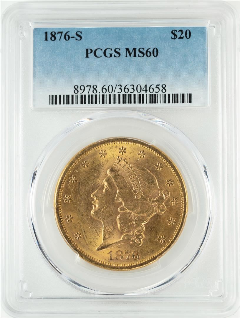 One 1876-S $20 Liberty Head Double Eagle Gold Coin PCGS MS60. PCGS Graded.