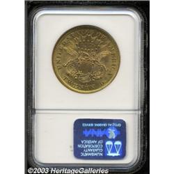 1876-S $20 MS60 NGC. The mintmark is entered unusually far to the right, and is nearly centered above the second T in TWENTY. Numerous parallel bold die lines are noted both above and below Liberty's ear. These are not clashmarks, although a faint clashmark (as made) is found on the reverse above the right (facing) wing. Lustrous and well struck with numerous wispy grazes on the cheek and left obverse field. An abrasion on the obverse rim at 12 o'clock provides the sole distraction. Important notice: Heritage usually auctions material at the rate of 200-250 lots per hour. On some occasions eBay Live bid software or the Internet may not be able to keep up with the pace of the auction. We recommend placing a realistic absentee bid now as insurance to avoid disappointment. Occasionally the auctioneer may eliminate or reject an eBay Live bid, and the auctioneer may also reopen a lot after the close of the eBay live bidding (usually because we missed an audience bid), and may reject your bid even if it shows you as the winning bidder. By bidding via eBay Live, you agree that Heritage may award the lot to another bidder at its sole discretion under the circumstances described above or any other reasonable circumstances. Also please note that all Heritage lots purchased through eBay Live carry a 20% Buyer's Premium. Please make sure you read the Terms and Conditions before you bid.