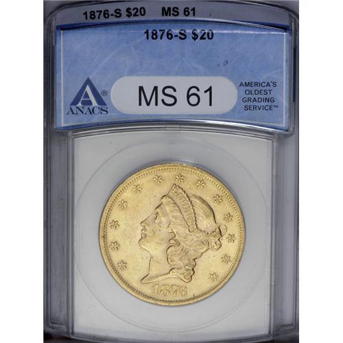 1876-S $20 MS61 ANACS. Typically struck with pleasing