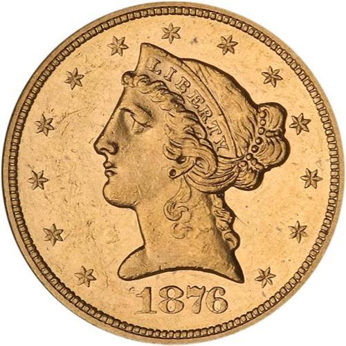 EXTREMELY RARE MINT STATE 1876-S HALF EAGLE <b>(PCGS # 8341)</b>