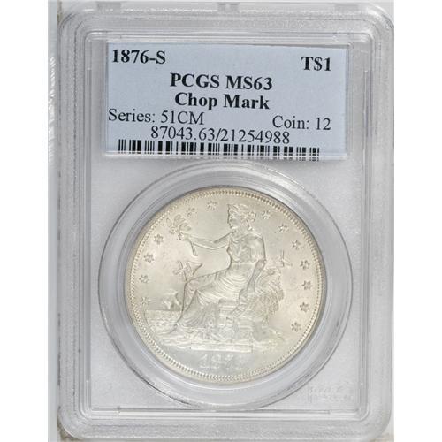 1876-S T$1 Chop Mark MS63 PCGS. Breen-5800, Type I Obv