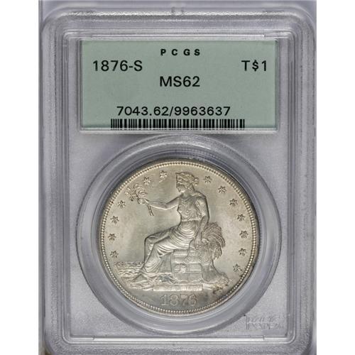 1876-S T$1 MS62 PCGS. Type One Obverse, Type Two Rever 1876-S