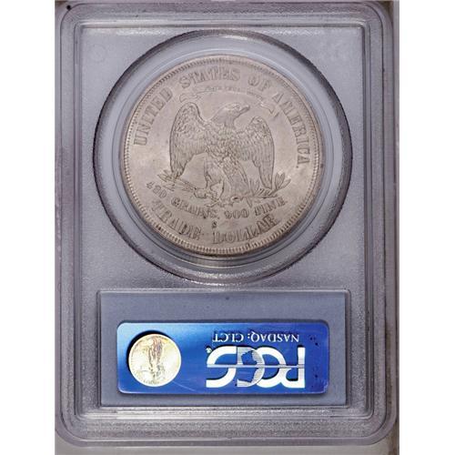 <B>1876-S<T$1> MS63 PCGS.</B></I> Type One Obverse and Reverse. Large S. Attractive dusky cream-gray and tan-gold patina embraces this satiny and suitably struck example. A few wispy slide marks near the eagle's head, but less abraded than is customary for the grade.
