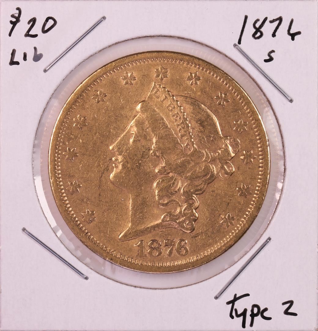 One 1876-S Type 2 $20 Liberty Head Double Eagle Gold Coin.