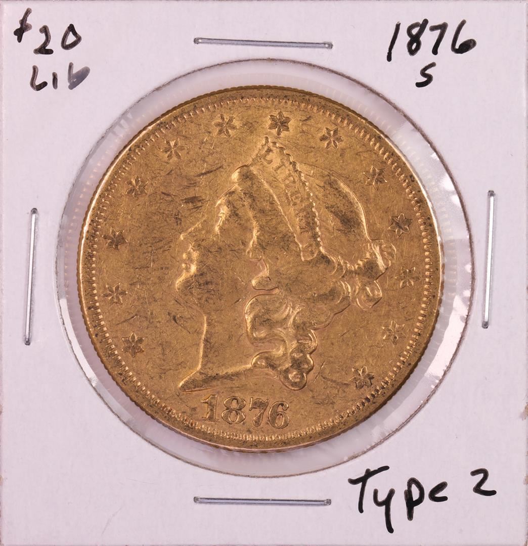 One 1876-S Type 2 $20 Liberty Head Double Eagle Gold Coin.