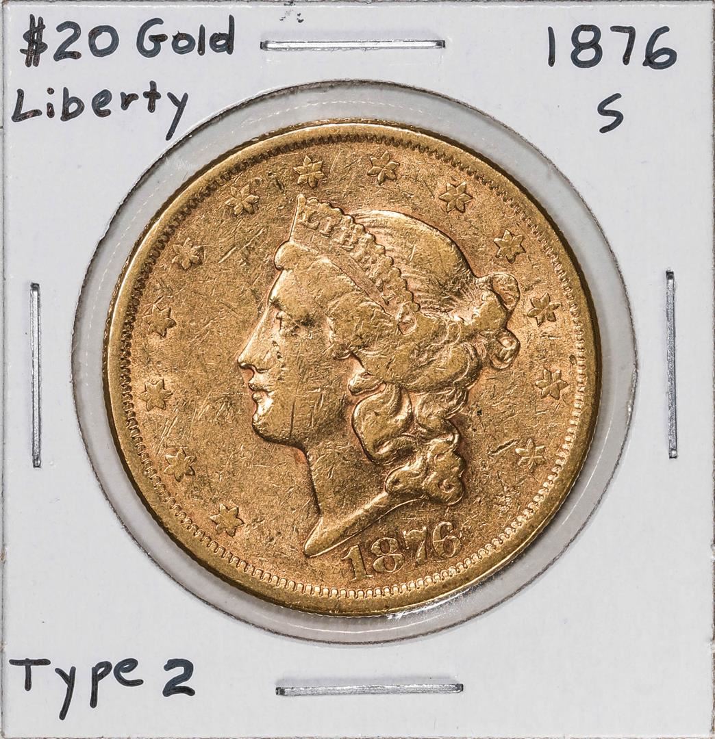 One 1876-S Type 2 $20 Liberty Head Double Eagle Gold Coin.