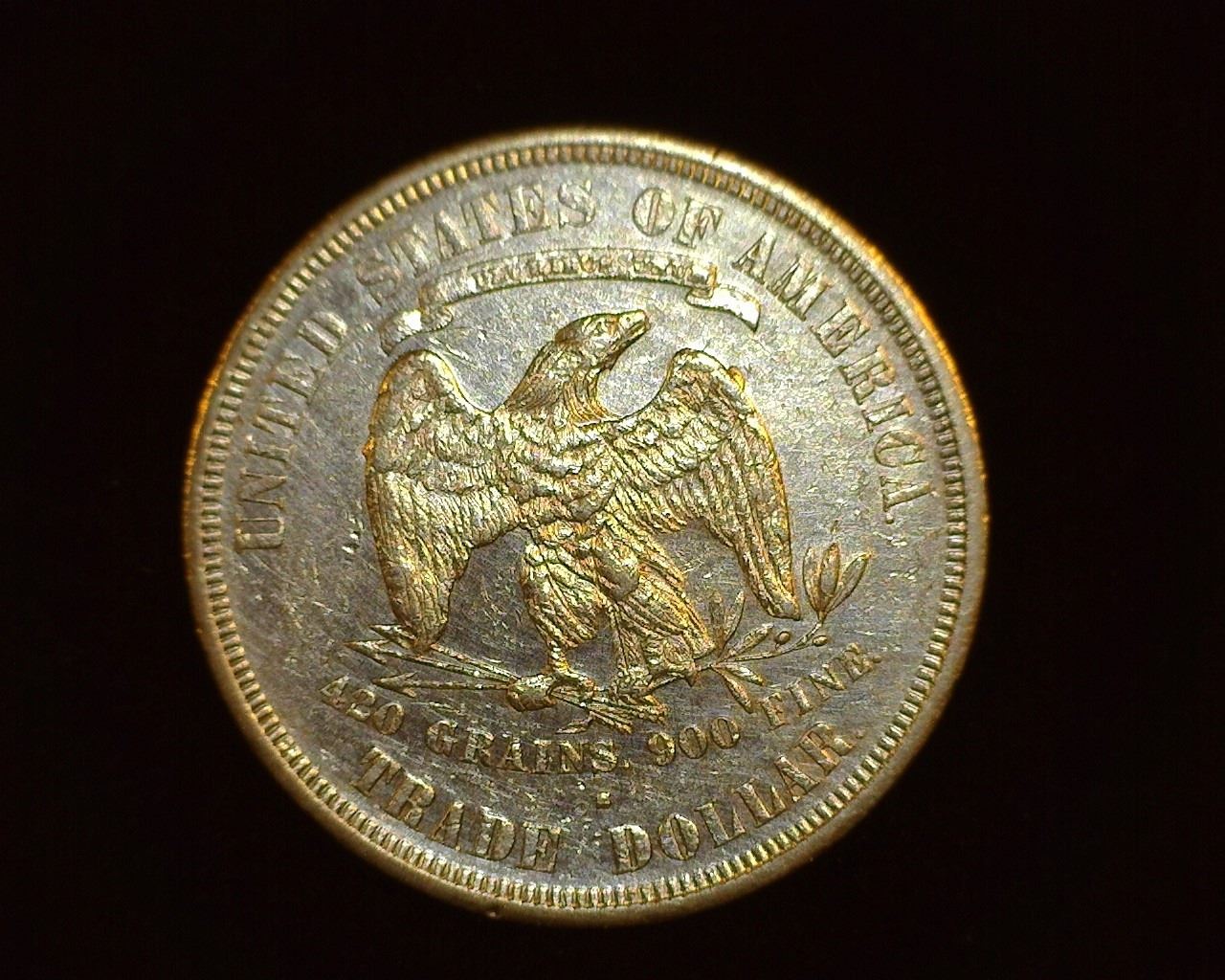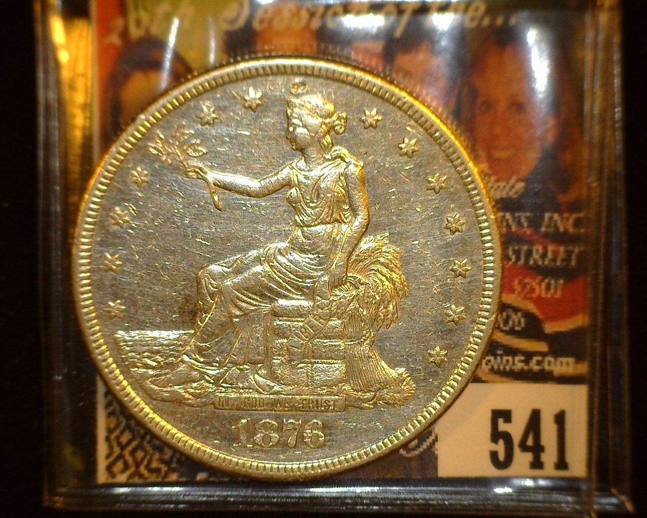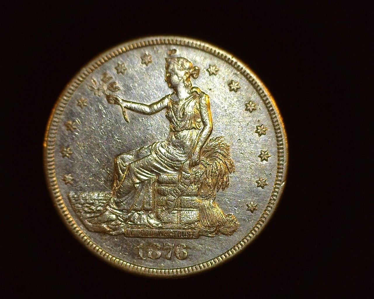 1876 S U.S. Trade Silver Dollar, Almost Uncirculated.