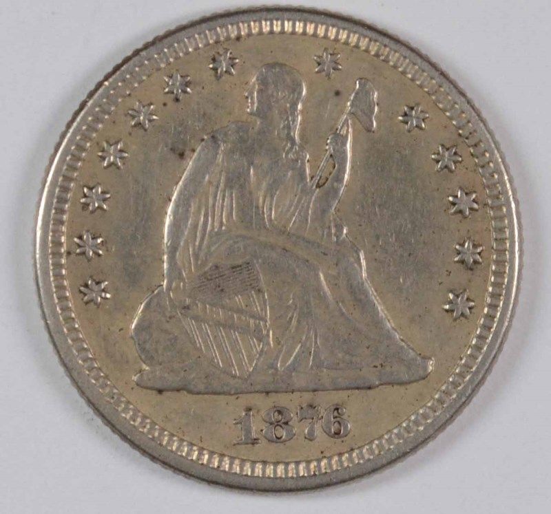 1876 SEATED QUARTER, MS-62 ( cleaned ) NICE COIN!