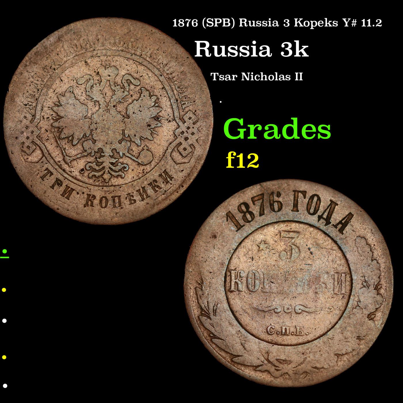1876 (SPB) Russia 3 Kopeks Y# 11.2 Grades f, fine.