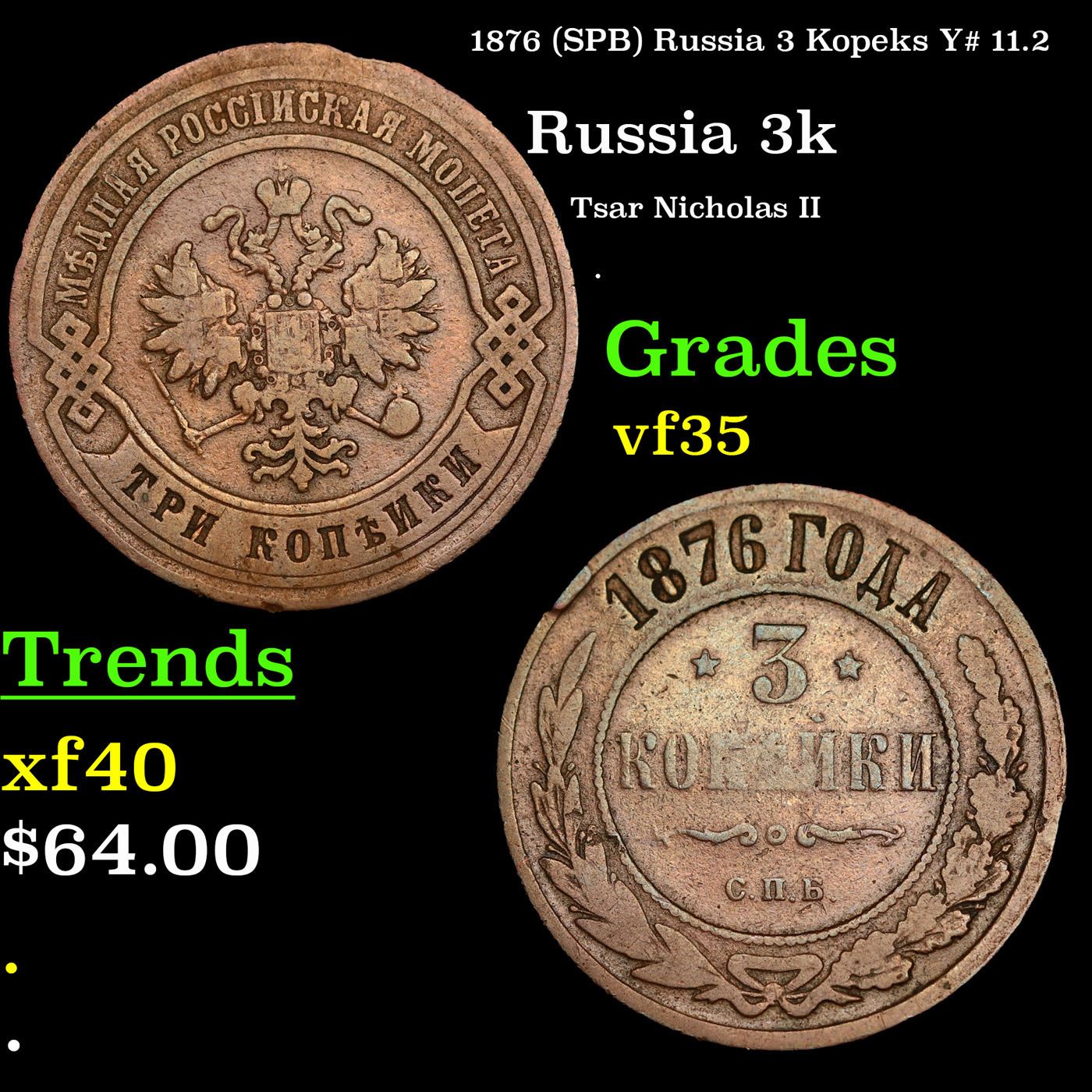 1876 (SPB) Russia 3 Kopeks Y# 11.2 Grades vf++.