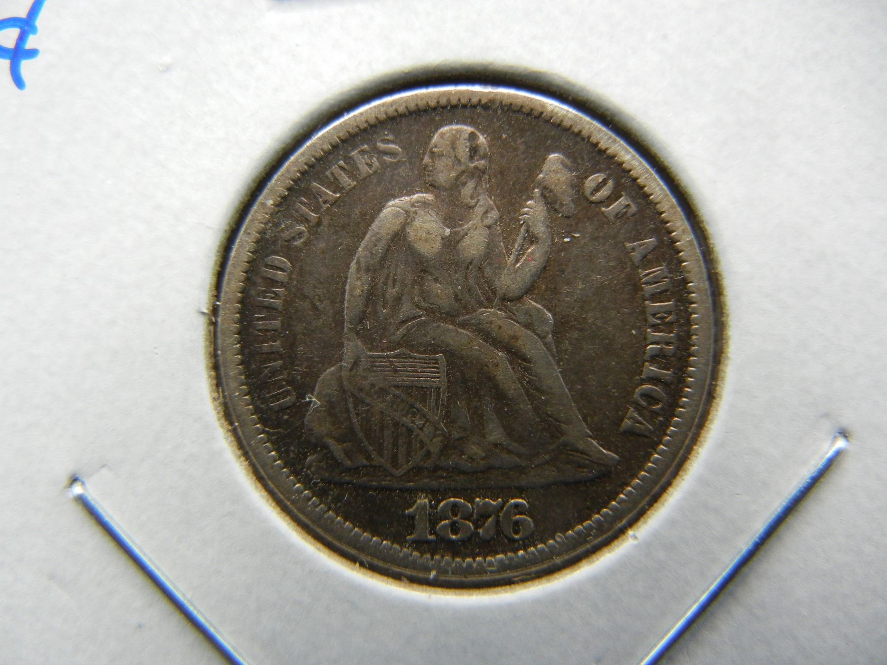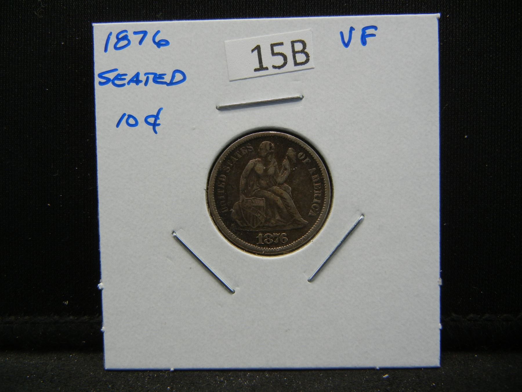 1876 Seated 10c. VF.