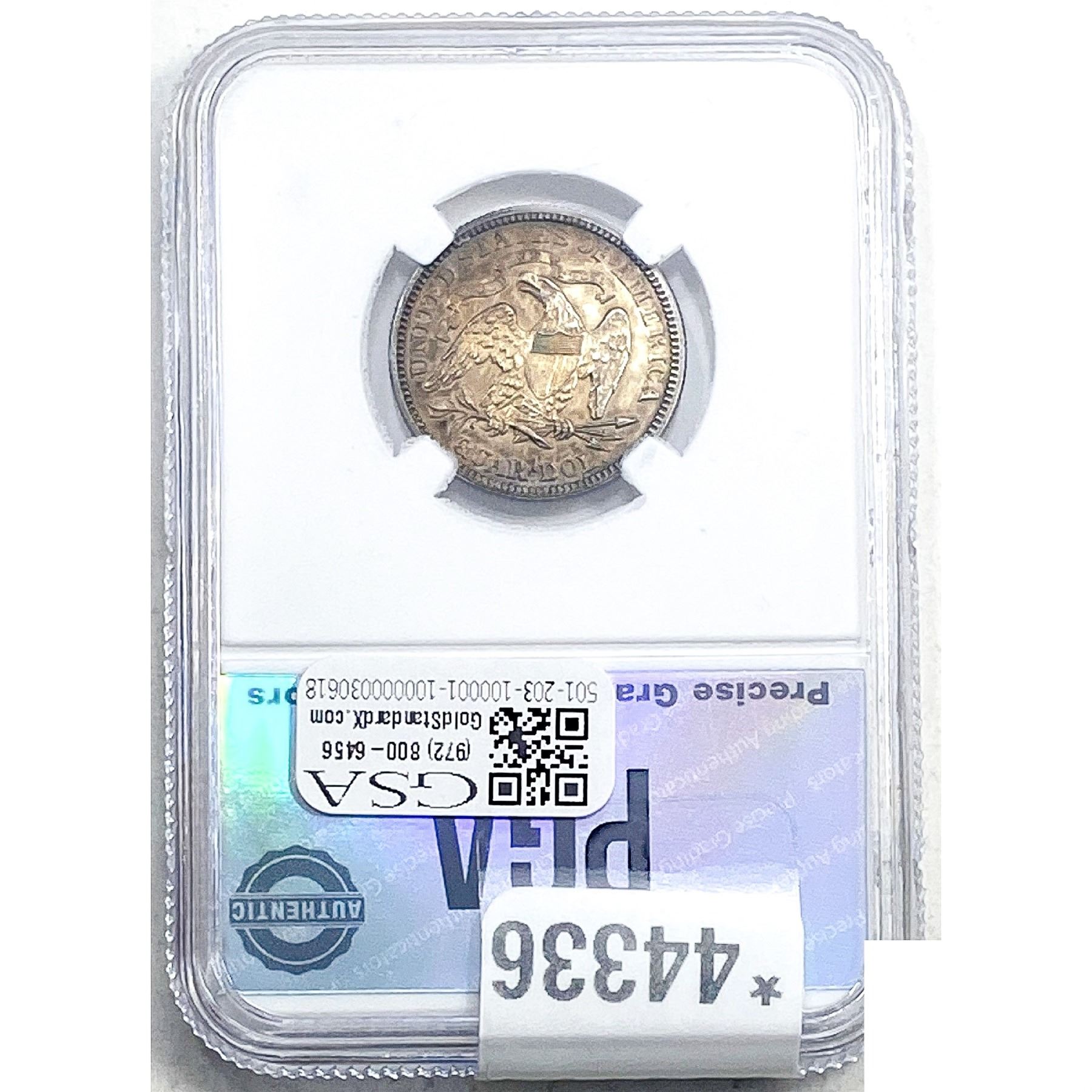 e. Coins sold referencing a third-party grading service are sold “AS IS” without any express or implied warranty, except for a guarantee by GSA that they are genuine. Removal or alteration of the holder, voids all of Bidder’s claims concerning that Product. Certain warranties may be available from the grading services and Bidders are referred to them for further details: Numismatic Guaranty Corporation (NGC), PO Box 4776, Sarasota, FL 34230, www.ngccoin.com/services/writtenguarantee.asp; Professional Coin Grading Services (PCGS), PO Box 9458, Newport Beach, CA 92658, www.pcgs.com/guarantee.html; ANACS, 6555 S. Kenton St., Ste. 303, Englewood, CO 80111; and Independent Coin Grading Co. (ICG), 7901 East Bellview, Ave., Suite 50, Englewood, CO 80111.
