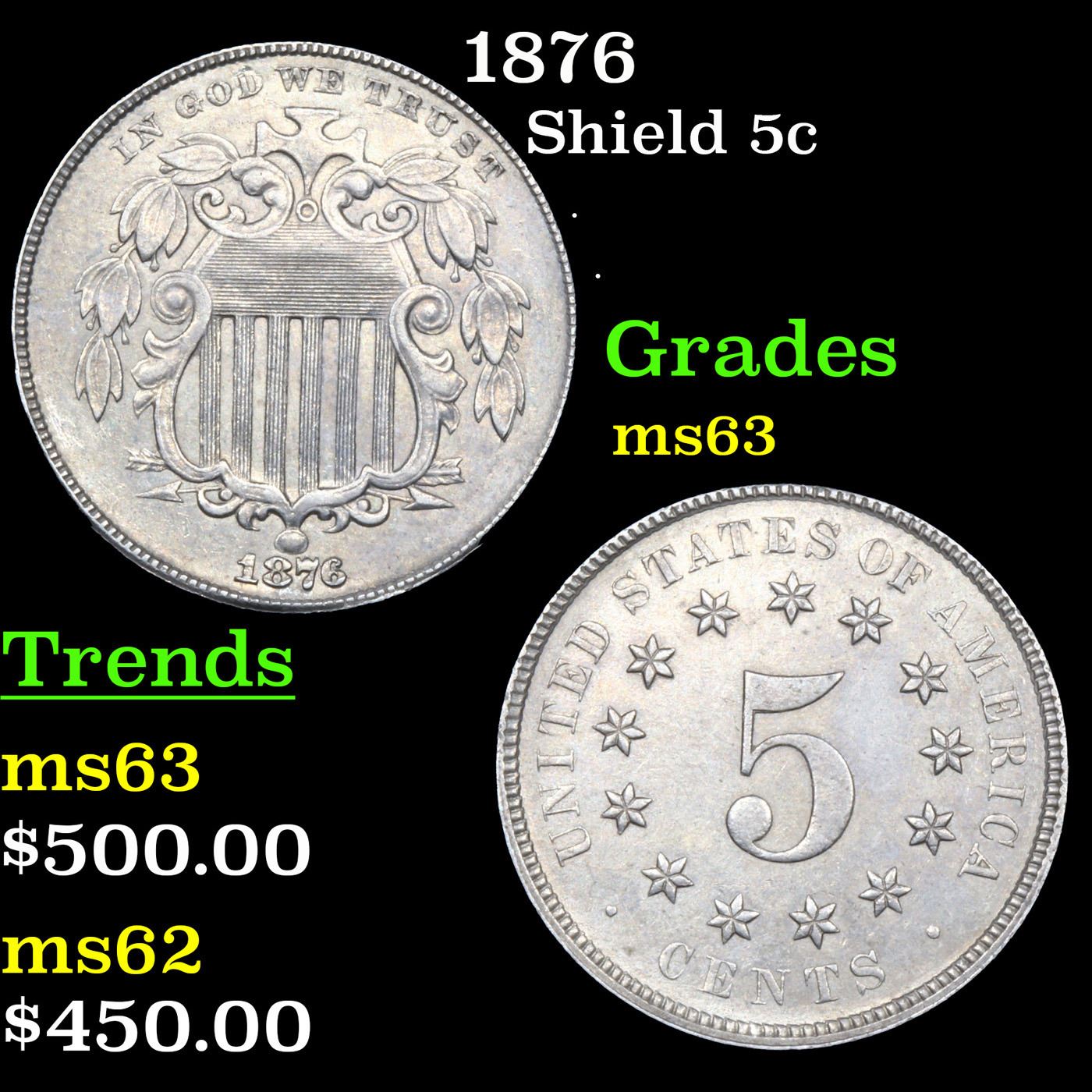 1876 Shield Nickel 5c Grades Select Unc. A Key Date's Pick, Bid to Win Coin