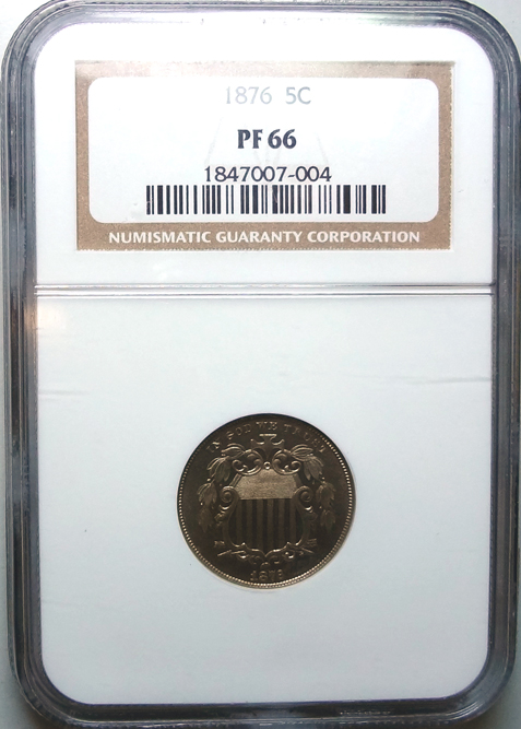 1876 Shield Nickel NGC PF66