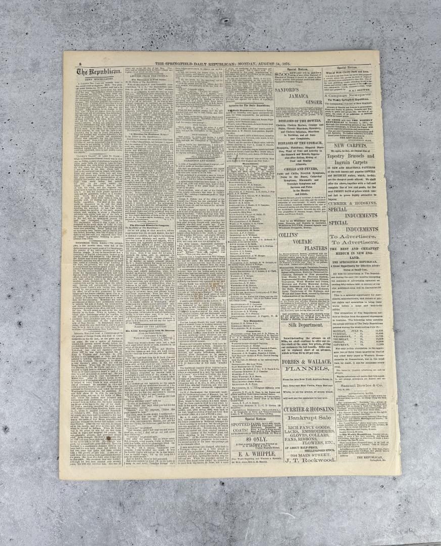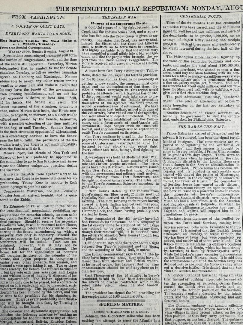Custer Massacre Newspaper Date is August 11 1876. Article about one of the follow on battles after The Battle Of The Little Big Horn