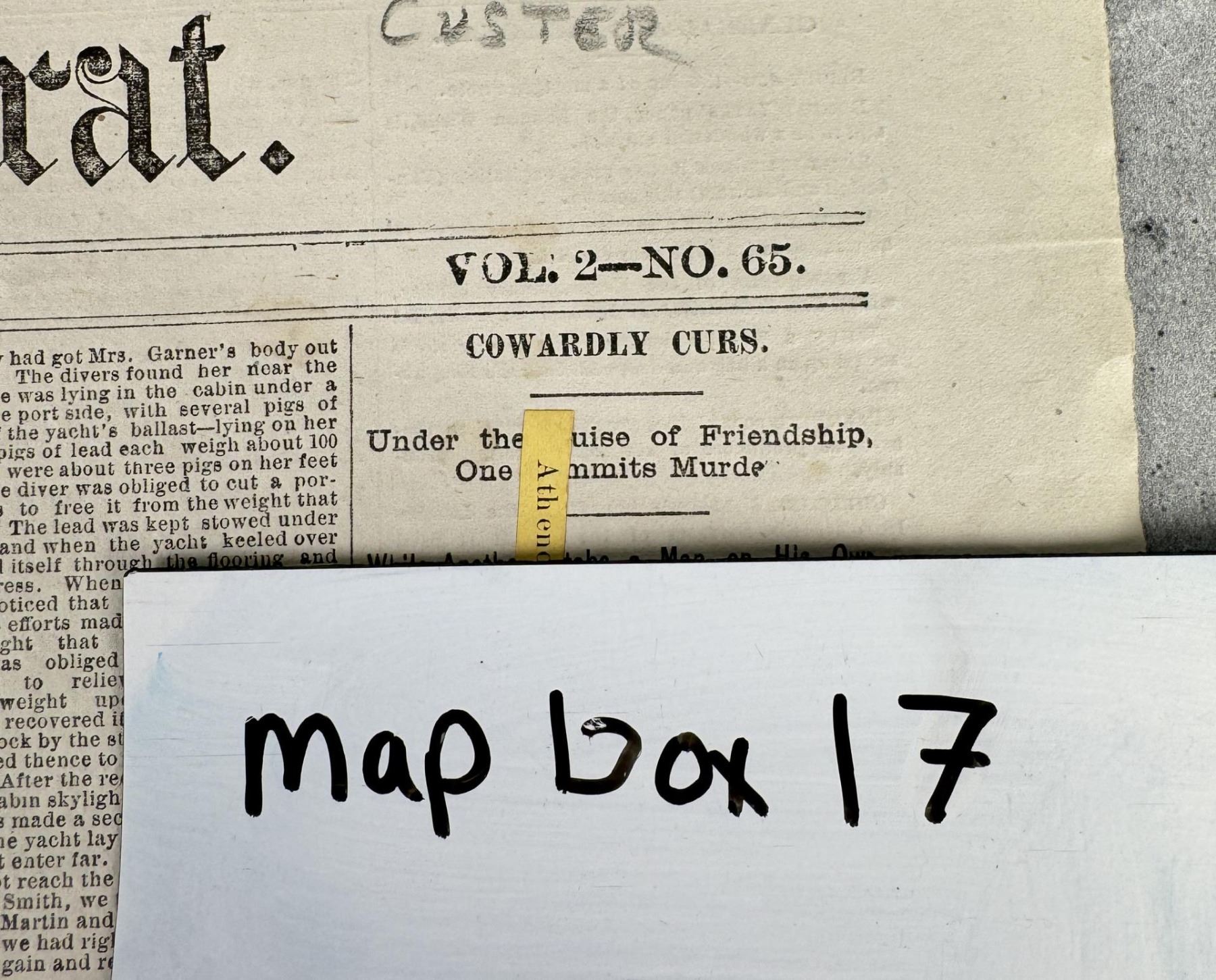 Newspaper date is July 24 1876. Contains a first hand account of one of the soldiers who survived The Battle Of The Little Big Horn.