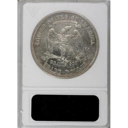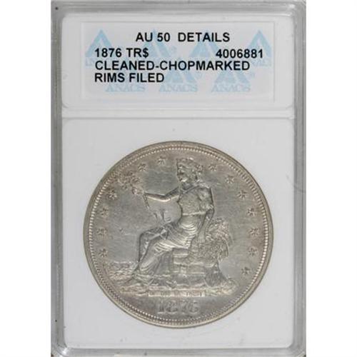 <B>1876 T$1 Chop Mark--Cleaned, Rim Filed--ANACS. AU50 Details.</B></I> NGC Census: (0/0). PCGS Population (1/2). (#87041)<BR><BR><b>Shipping:</b> Coins & Currency (<a target="_blank" href="http://www.heritageauctions.com/common/shipping.php">view shipping information</a>)