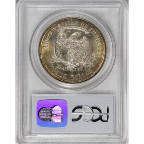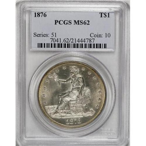 <B>1876 T$1 MS62 PCGS.</B></I> Type One Obverse (ribbon points left) and reverse (a berry under the claw). Sharply struck, with gold patina, deeper in hue on the reverse, resting on lustrous surfaces. A few light scuffs and luster grazes are noted.<B><BR></B></I><I>From The Beau Clerc Collection.</B></I><BR><BR><B>Coin Engraver:</B> William Barber<BR><BR><b>Shipping:</b> Coins & Currency (<a target="_blank" href="http://www.heritageauctions.com/common/shipping.php">view shipping information</a>)
