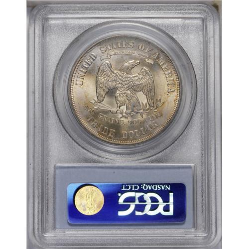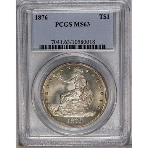 <B>1876<T$1> MS63 PCGS.</B></I> Type One Obverse and Reverse. Satiny with traces of reflectivity, especially beneath the eagle's wings. The obverse has peripheral rose and gold toning, while the reverse has more intense rose, lilac, and olive patina. Sharply struck with scattered marks that restrict the grade.<BR><I>From The Royal Oak Collection.</B></I>