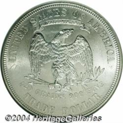 <table><tr><td><table><tr><td>1876 T$1 MS64 NGC. Type One Obverse, Type Two Reverse. Untoned with shimmering cartwheel luster and strong definition except for the details of Liberty's head and immediately surrounding stars. The surfaces are even less abraded that one might envision for the grade. <BR><BR><B>Important notice:</B> Heritage usually auctions material at the rate of 200-250 lots per hour. On some occasions eBay Live bid software or the Internet may not be able to keep up with the pace of the auction. We recommend placing a realistic absentee bid now as insurance to avoid disappointment. Occasionally the auctioneer may eliminate or reject an eBay Live bid, and the auctioneer may also reopen a lot after the close of the eBay live bidding (usually because we missed an audience bid), and may reject your bid even if it shows you as the winning bidder. By bidding via eBay Live, you agree that Heritage may award the lot to another bidder at its sole discretion under the circumstances described above or any other reasonable circumstances. Since eBay bids are not shown to us until we open the lot on the floor, we treat those bids just like floor bids. In most cases the floor responds before the eBay bid is presented to us, due to Internet lag time, so for consistency we have made it a policy that floor bids are always considered first over tie eBay live bids. Also please note that all Heritage lots purchased through eBay Live carry a 20% Buyer's Premium. Please make sure you read the Terms and Conditions before you bid. <BR><BR><B>IMPORTANT ANNOUNCEMENT ABOUT RESERVES:</B> Heritage now divulges all reserves on its web site 7 days before every auction. If you want to know whether the reserve on this lot has been met, and if not, what the reserve amount is, please visit this lot page on the HeritageCoin.com web site, or email: bid@HeritageGalleries.com </span></font></td></tr></table></td></tr></table>