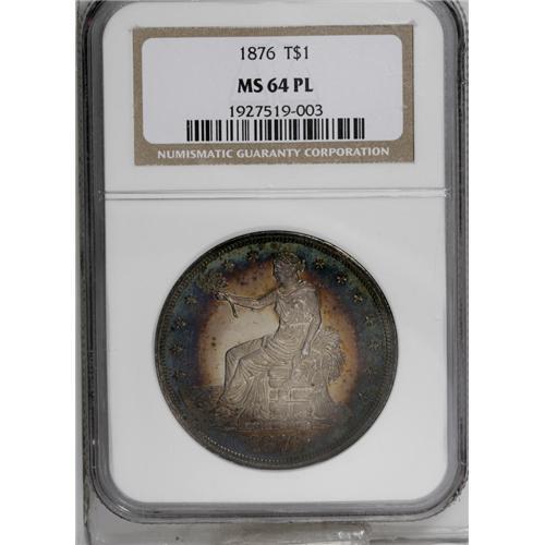 1876 T$1 MS64 Prooflike NGC. Type One Obverse, Type Tw