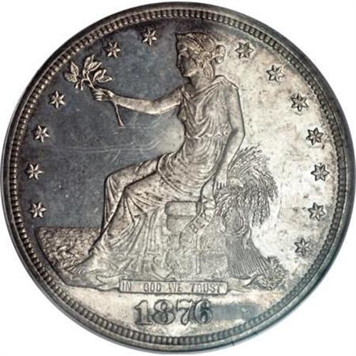 <B>1876 T$1 PR62 Cameo PCGS.</B></I> Type Two Obverse and Reverse. Proofs are known with Type One obverse and reverse, Type Two obverse and reverse, and transitionally with Type One obverse and Type Two reverse. This lightly toned proof has moderate cameo contrast with an essentially brilliant reverse.<BR><I>From The John Stimson, Sr. Collection, Part Two.</B></I><BR><BR><b>Shipping:</b> Coins & Currency (<a target="_blank" href="http://www.heritageauctions.com/common/shipping.php">view shipping information</a>)