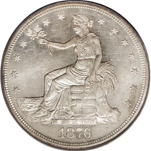 <B>1876 T$1 PR63 Cameo PCGS.</B></I> Type One Obverse, Type Two Reverse. The devices are mildly frosted and the fields are nicely reflective on this attractive proof specimen. The striking details are crisp on all elements, save for the top of Liberty's head and obverse stars 5 and 6. A few wispy hairlines and faint pinscratches in the fields limit the grade. Population: 10 in 63 Cameo, 13 finer (10/06).<BR><BR><b>Shipping:</b> Coin/Currency (<a target="_blank" href="http://www.heritageauctions.com/common/shipping.php">view shipping information</a>)