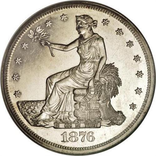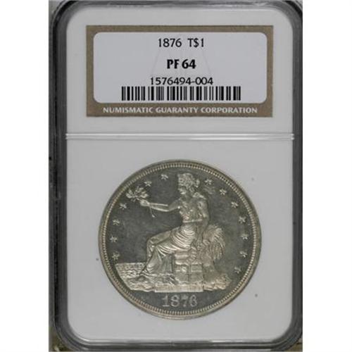 <B>1876 T$1 PR64 NGC.</B></I> Type One Obverse, Type Two Reverse. A lightly toned proof near-Gem with delicate frost on the devices, although the holder lacks a Cameo designation. Mintages were higher than in 1875 due to the Centennial Exposition in Philadelphia, but nice survivors remain very scarce. Census: 47 in 64, 20 finer (2/08).<BR><BR><B>Coin Engraver:</B> William Barber<BR><BR><b>Shipping:</b> Coins & Currency (<a target="_blank" href="http://www.heritageauctions.com/common/shipping.php">view shipping information</a>)