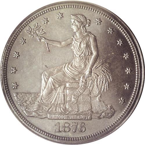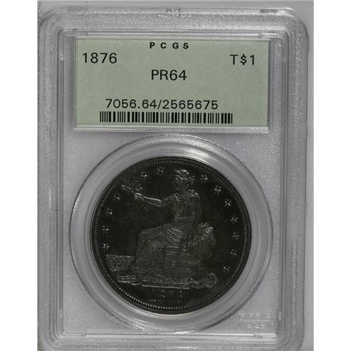 <B>1876<T$1> PR64 PCGS.</B></I> Type One Obverse. Type Two Reverse. Deeply and richly toned in shades of gunmetal-blue, one's appreciation of the reflective fields has been lost excepting a few select light angles. Sharply struck, the surfaces reveal scattered hairlines that confirm the validity of the assigned grade. An attractive coin from the viewpoint of originality, this lot represents an affordable alternative to a much more expensive Gem specimen.