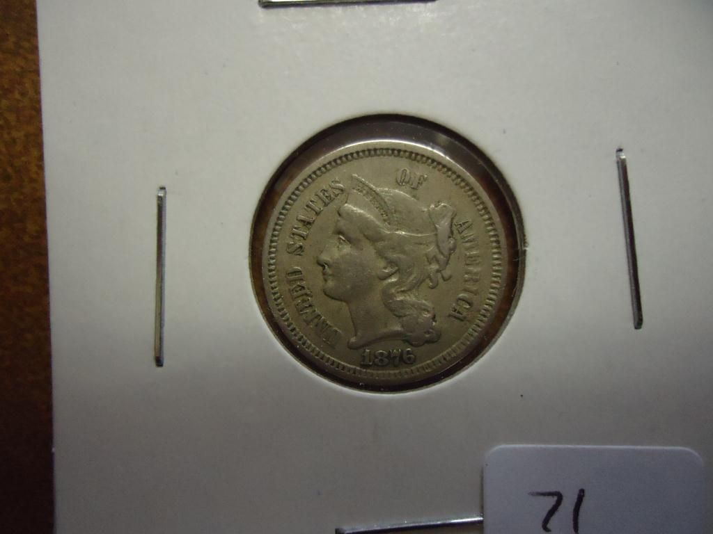 1876 THREE CENT PIECE (NICKEL) (VERY FINE)