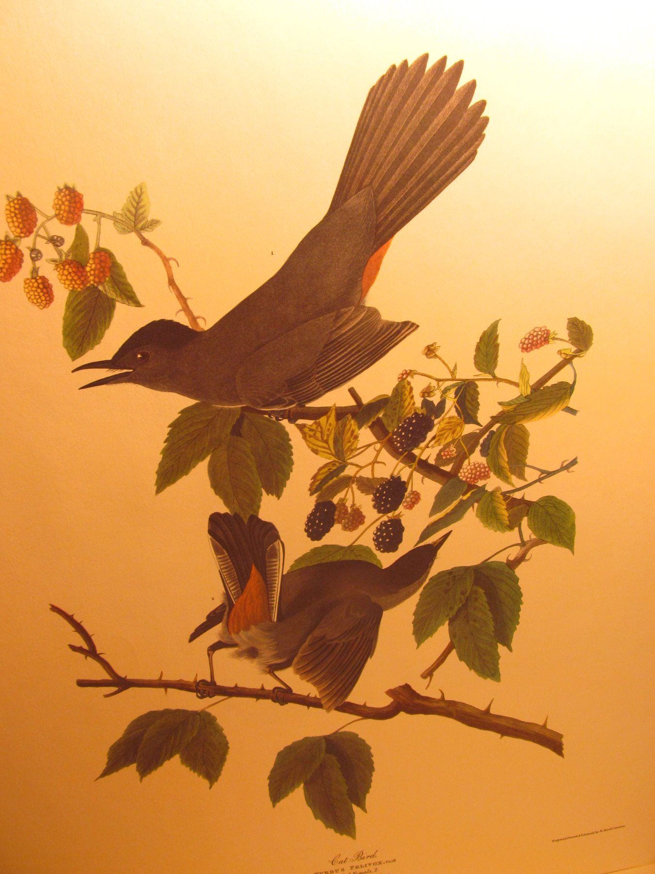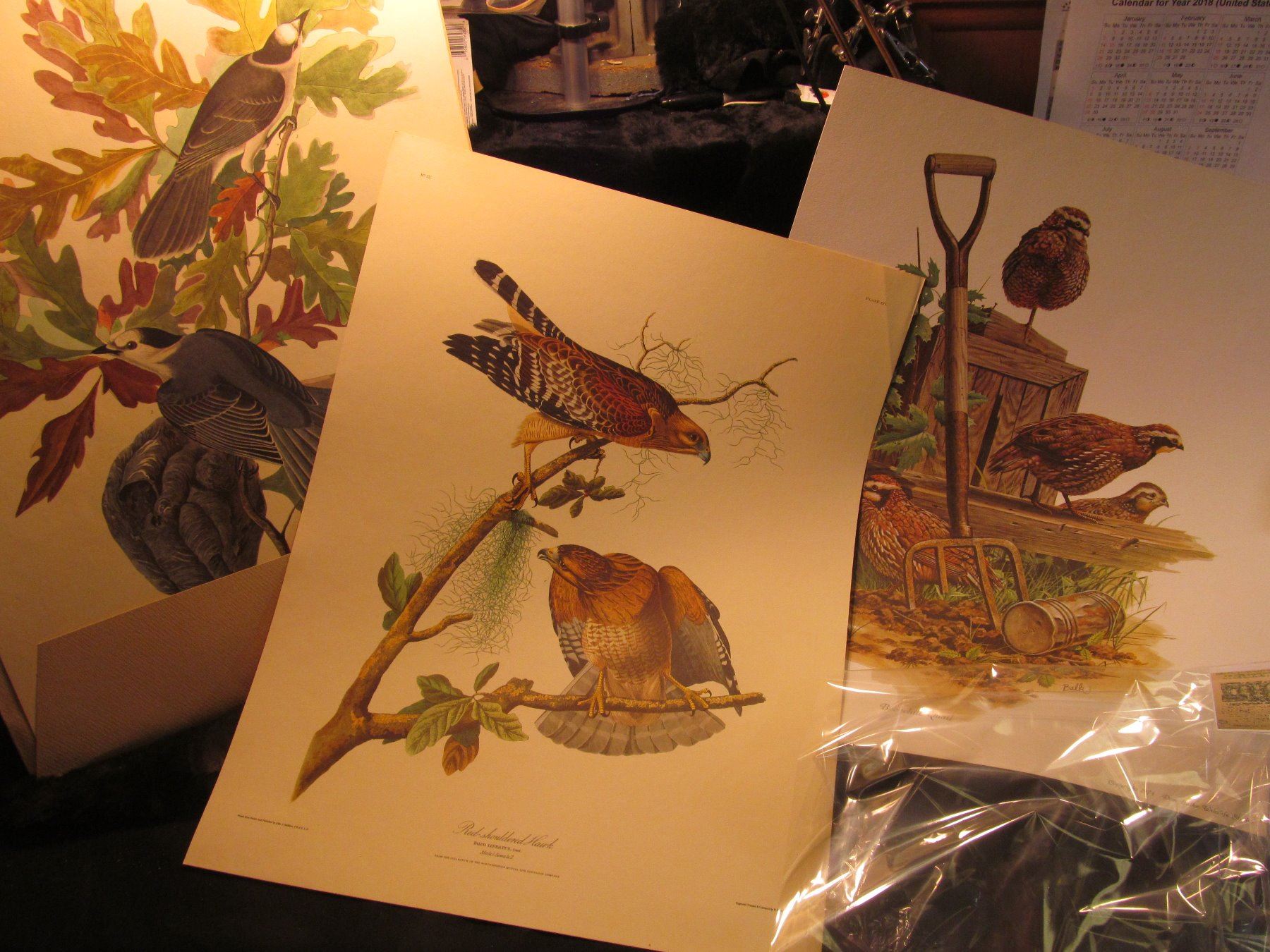 1876 _ "The Fine Art of Audubon A Demonstration in Color Reproduction…" Four different Color 16" x 20" Prints of Bob White Quail, Red-Shouldered Hawks, Canada Jays, & Cat Birds.