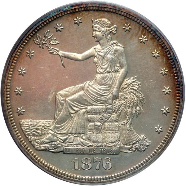 1876. PCGS graded Proof 62 Cameo. A hint of light toned appears about the edges. Choice; boldly rendered by the sharp Proof dies. Only 1,150 minted. Pop 10; 36 finer (PCGS # 87056) .